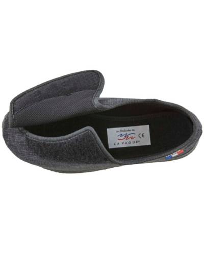 Ce chausson extra-large (11ème largeur) dont l'ouverture est composée d'un grand scratch est très facile à enfiler ; le chausson s'ouvre complètement sur le devant permettant au pied de se lover dans la chaussure. Le chaussant très large offre un espace suffisant pour les pieds sensibles, sujets à des gonflements, avec hallux valgus, abîmés ou déformés. La semelle amovible permet l'utilisation d'orthèses plantaires. La semelle antidérapante et le léger talon compensé de 2,5 cm permettent une marche confortable et sécurisée. Enfin, le produit est traité Sanitized (prévient le développement des bactéries) et est entièrement lavable.